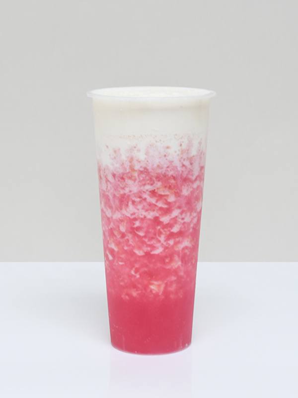饮品配方:臻典凤梨汁30ml;大拇指黄金果糖40ml;新鲜凤梨肉150g;红火龙果汁20ml(去肉和籽);芝士1份;品善道绿茶100ml;冰块200g